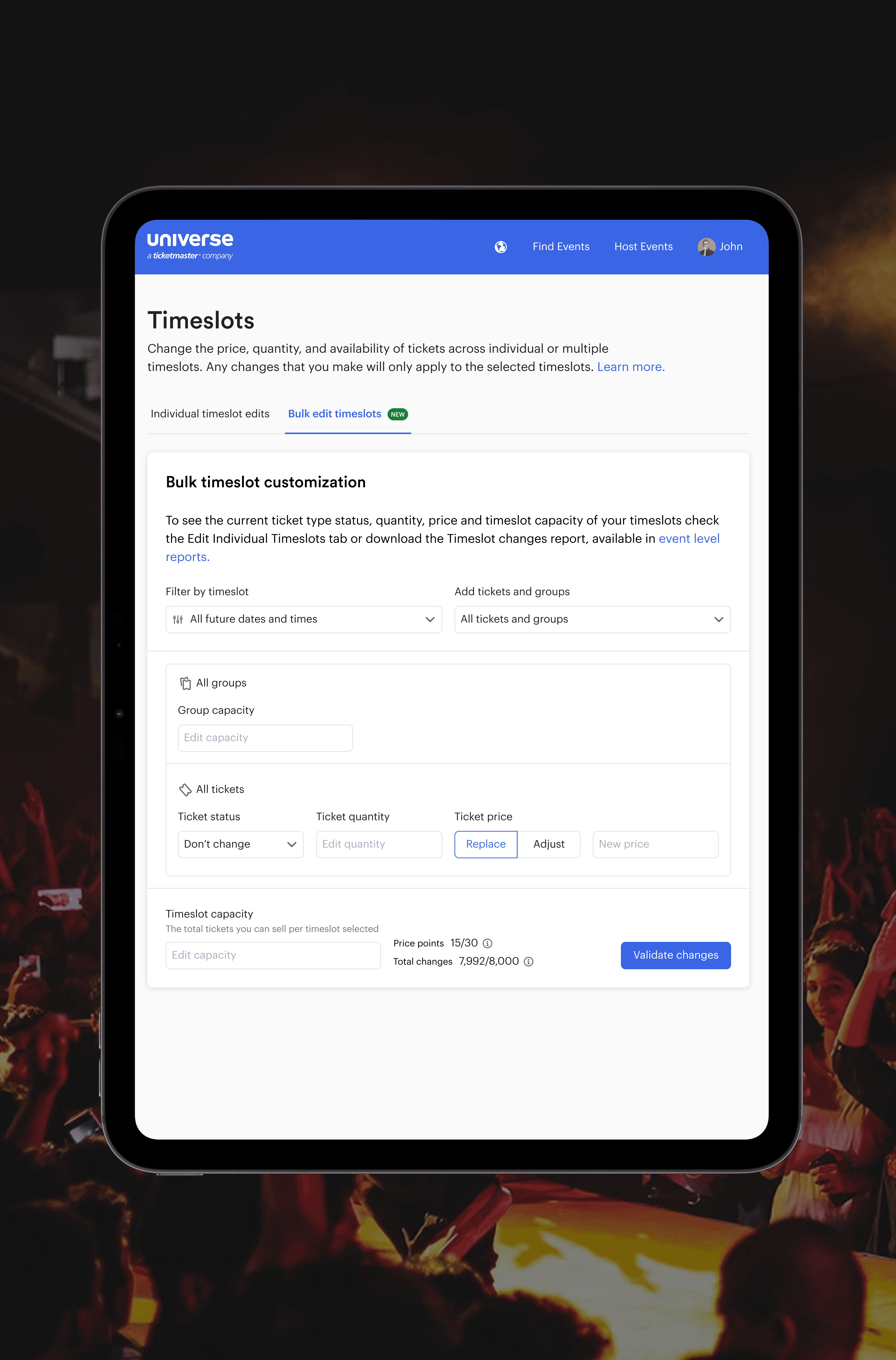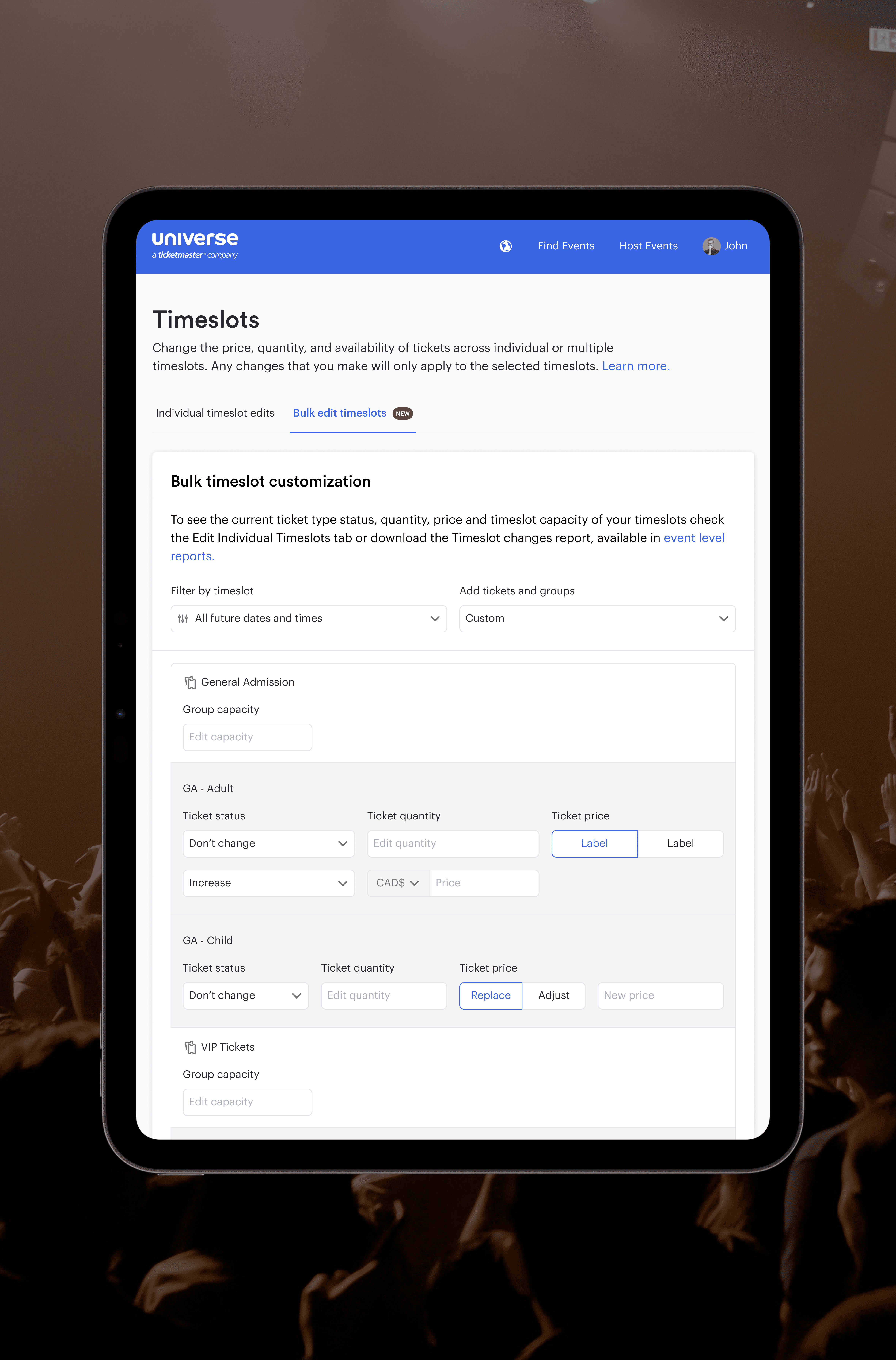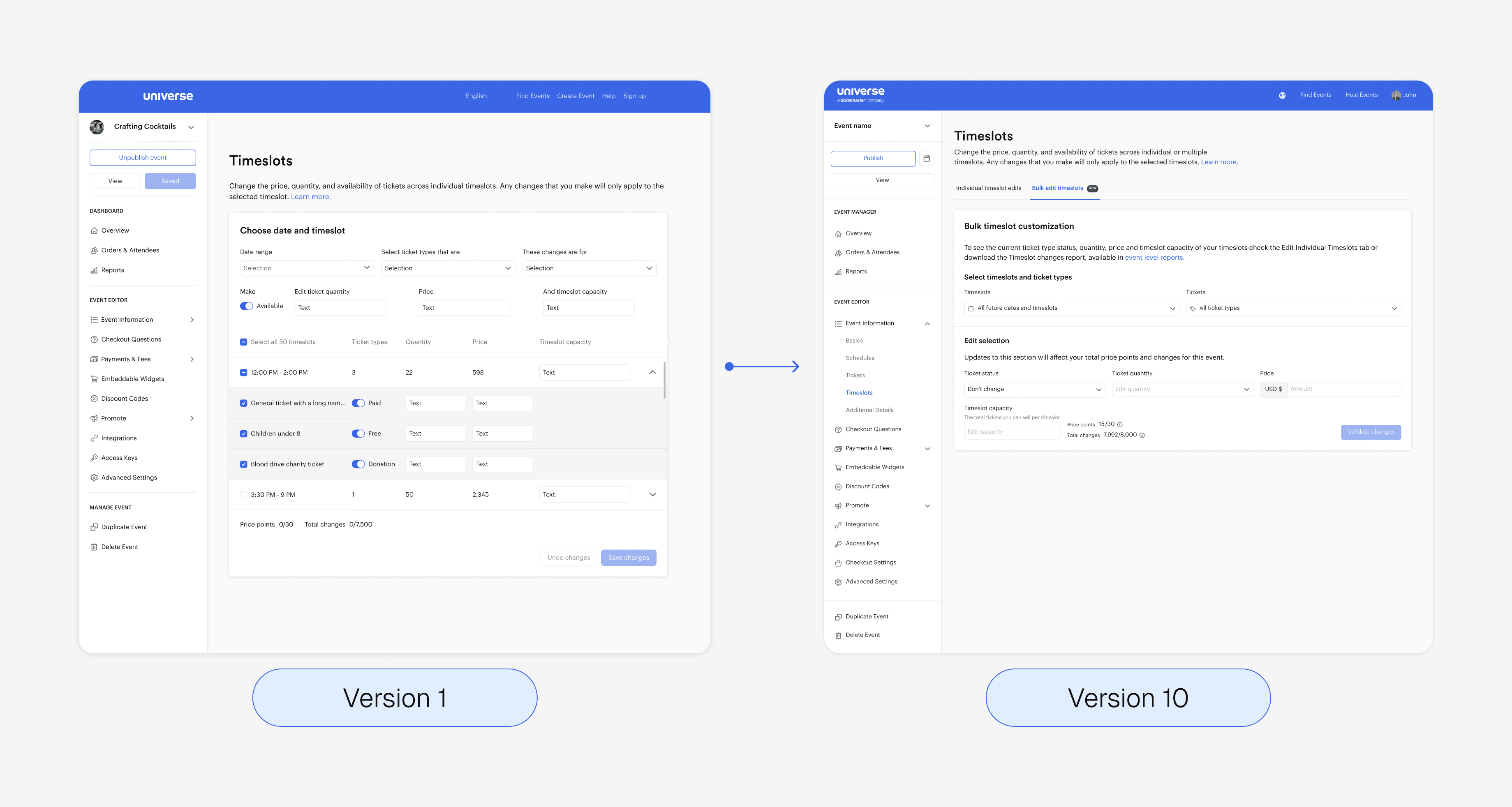 Universe was trying to optimize for individual ticket and timeslot edits, but no update tackled our client's actual pain points.