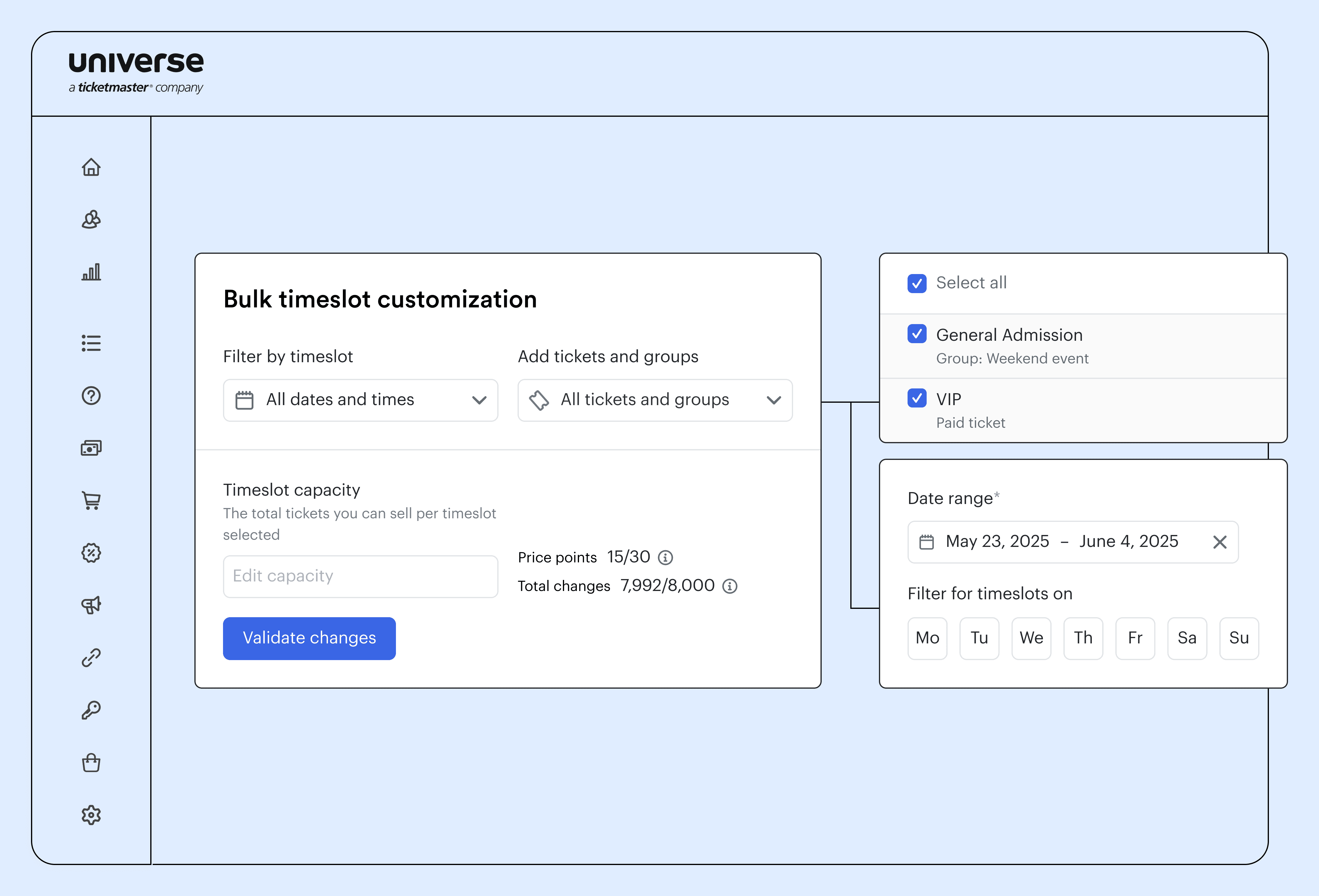 Organizers had to update every ticket and time slot one by one, turning large events into hours of error-prone manual work and creating operational strain, delays, and churn risk as event complexity grew.